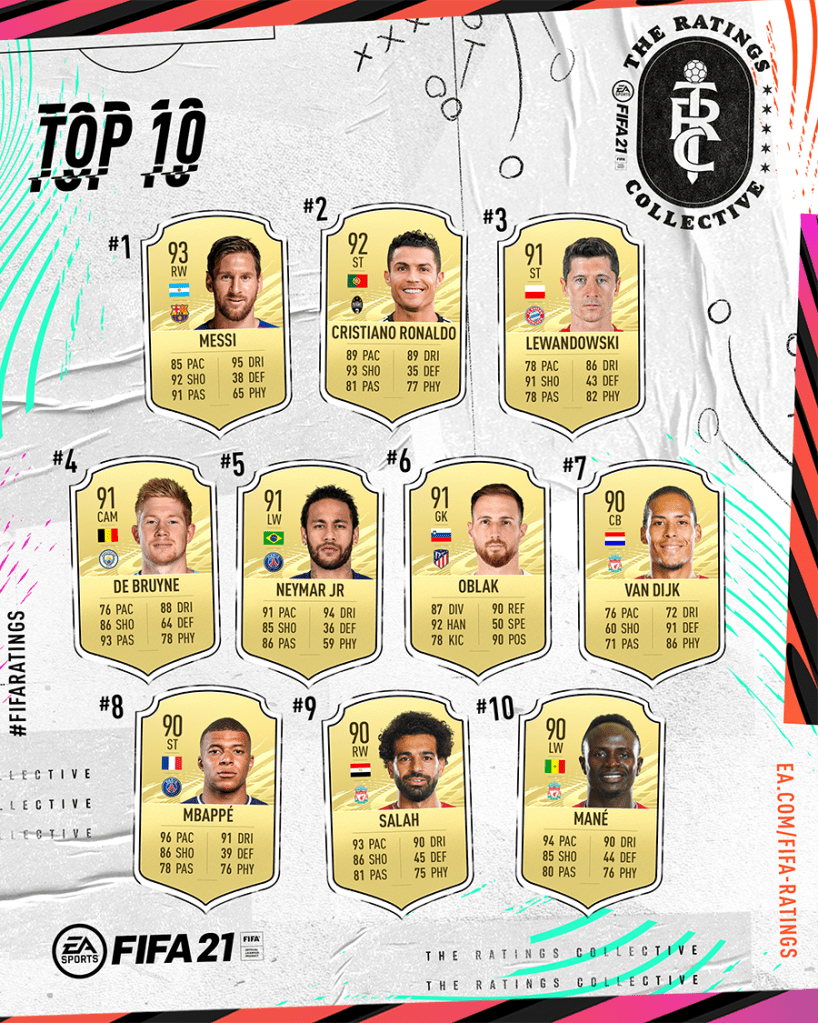 Hace unos días Electronic Arts reveló las nuevas calificaciones de los 100 jugadores mejores valorados de FIFA 21.