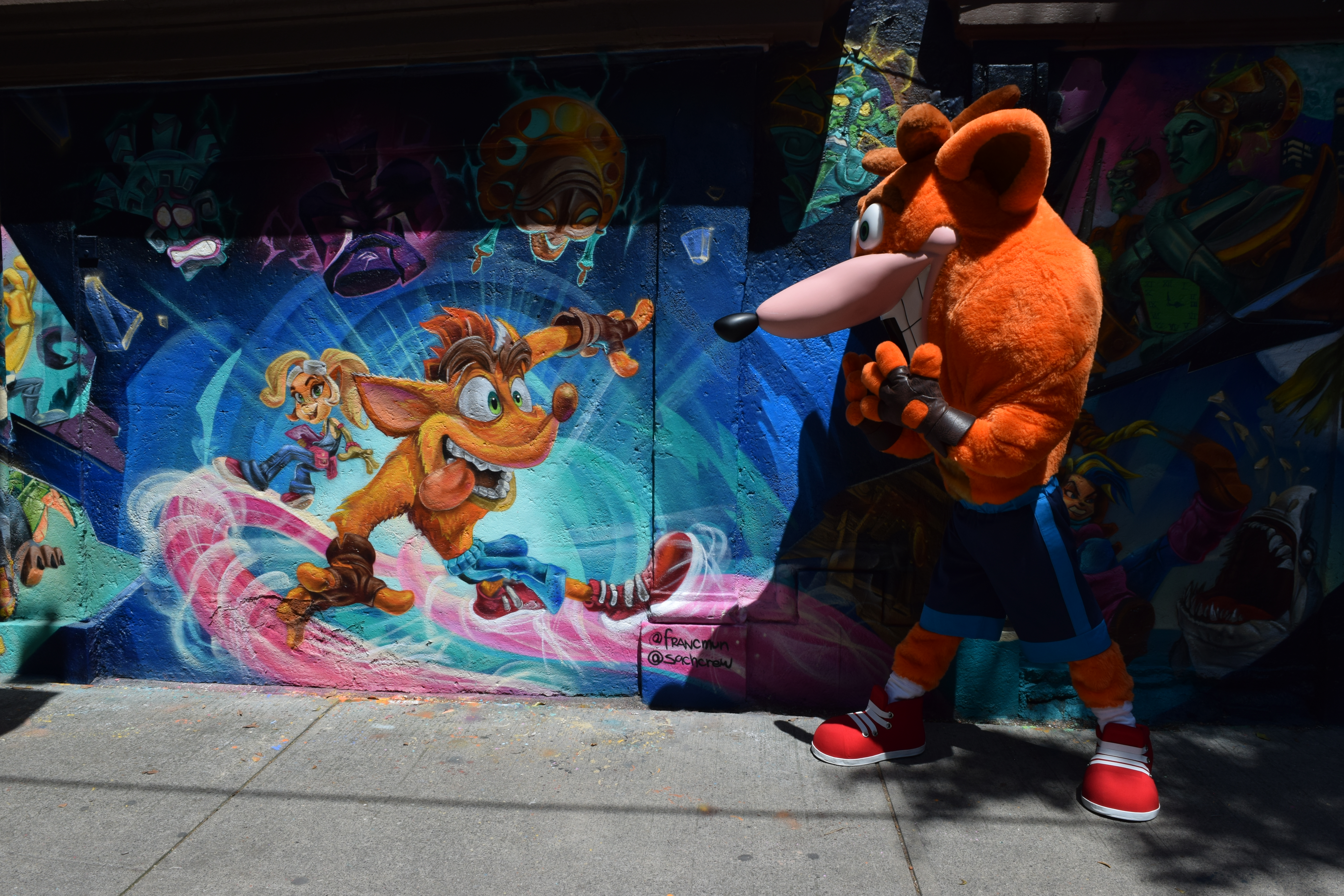 Quizas por la ruptura que se creo en el espacio-tiempo, Crash Bandicoot apareció en la ciudad de México el pasado 28 de septiembre para posar frente al grafiti que pintó “Sachcrew”, un grupo artístico que forma parte de “Street Art Chilango”, previo al lanzamiento del juego Crash Bandicoot 4: It’s About Time.
