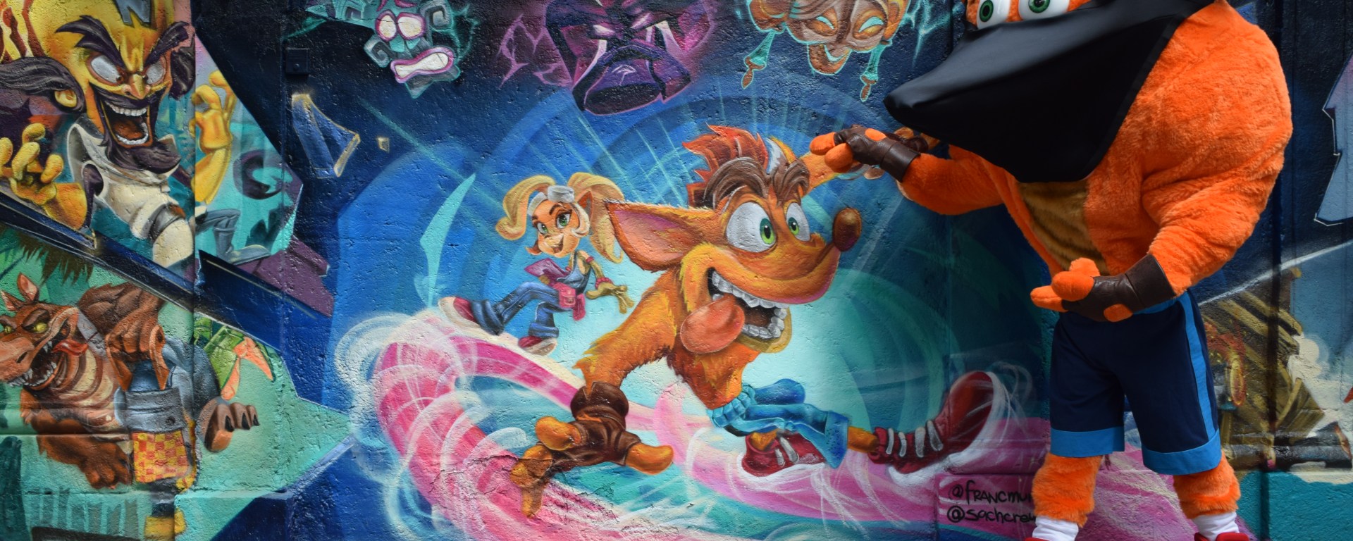 El grafiti está localizado en Querétaro 181, Colonia Roma Norte en la Ciudad de México, y muestra el arte final de Crash Bandicoot 4: It’s About Time. El artista Francisco (@francmun) capturó todos los detalles del arte en la pared a lo largo de dos semanas. La obra estará expuesta por dos meses para que los fans puedan visitarlo y tomarse fotografías.
