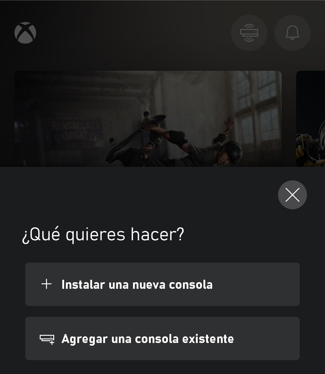 En caso que ya tengas la aplicación instalada, tendrás que dar de alta la nueva consola. Para hacerlo, abre la aplicación “Xbox” y presiona el primer botón que aparece en la parte superior derecha y sigue los tres sencillos pasos.