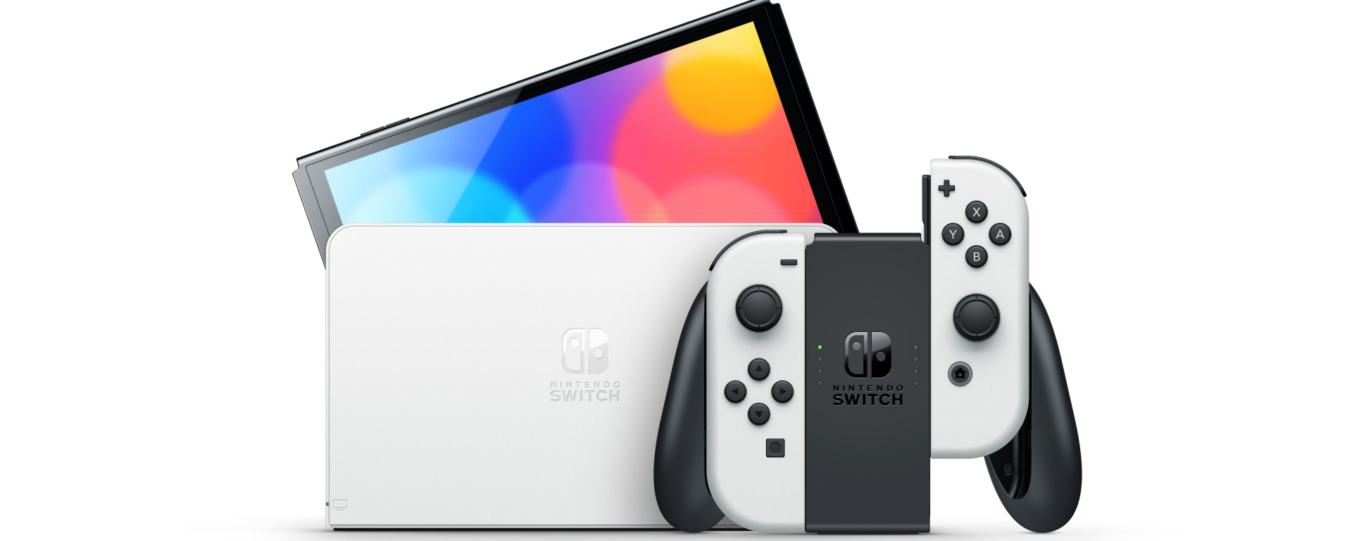 Nintendo Switch OLED ofrecerá dos opciones de colores, el elegante white set, con Joy-Con y dock color blanco; Y el clásico neon red / neon blue set, con los Joy-Con azul y rojo.